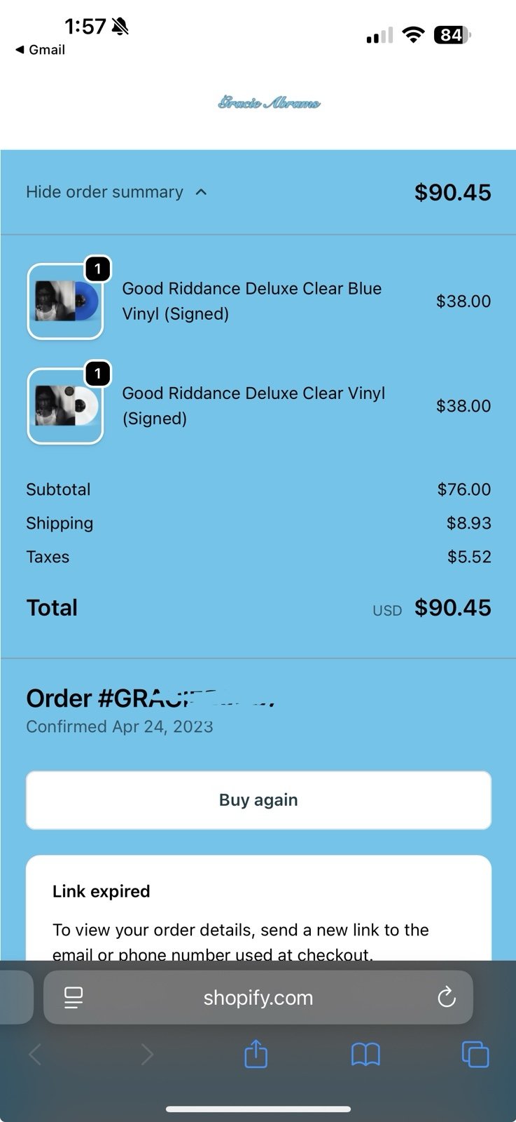 Photograph insert signed by Gracie Abrams